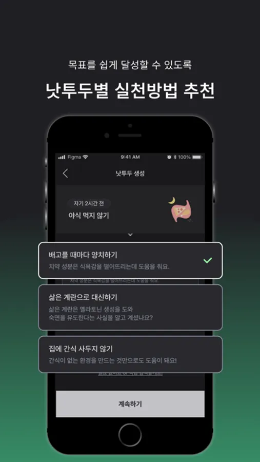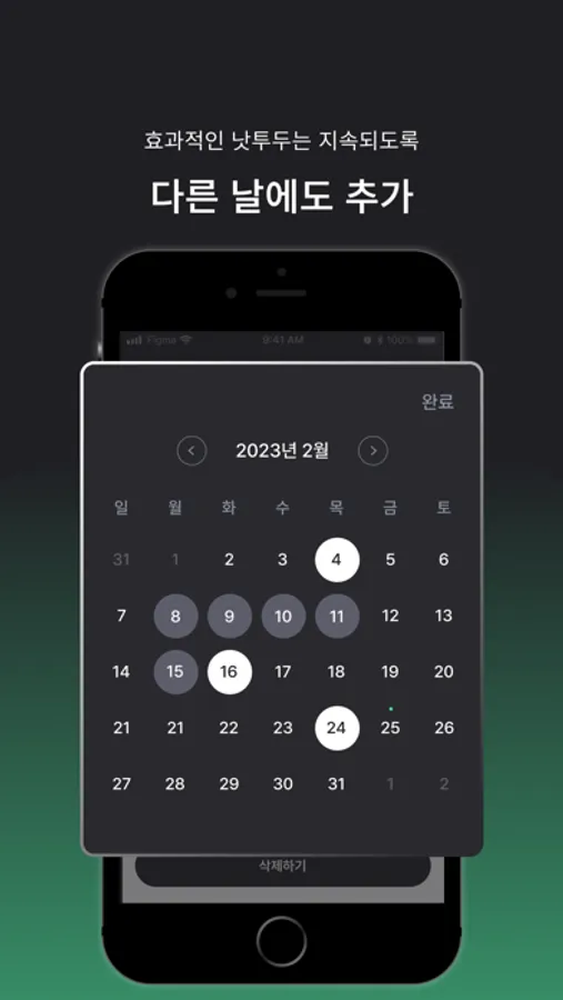 달성률에 따라 달라지는 그래픽을 보며, 낫투두 달성을 지속하고 주체적인 삶을 살아갈 수 있도록 꾸준히 목표에 도전해보세요.