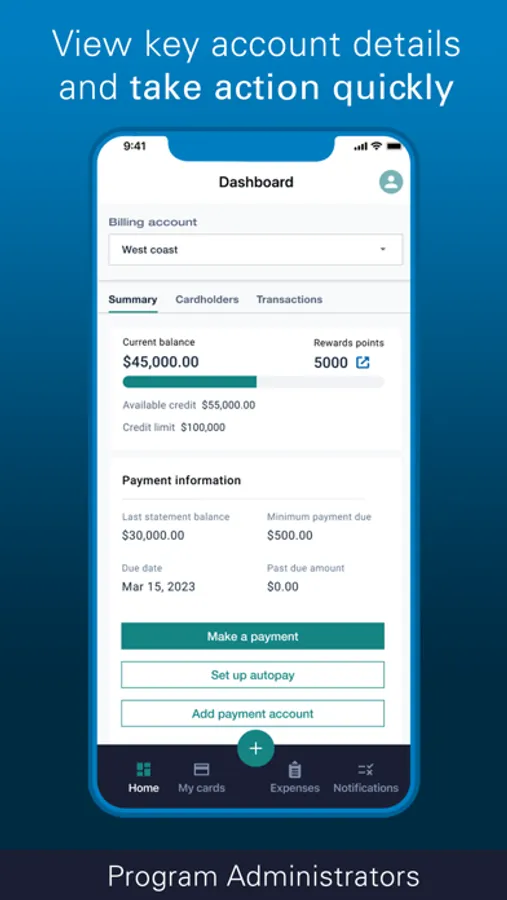 -- Comprehensive analytics that provide complete program visibility and drive better business decisions with insights into spend trends, merchant spend and credit line use