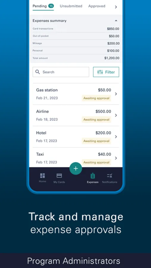 -- Employees to make payments, view transactions, request a card and submit expense reports