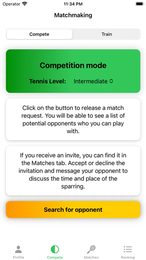 3. Start the search for match/training and send invitations to potential opponents/partners.