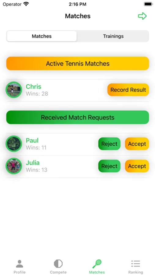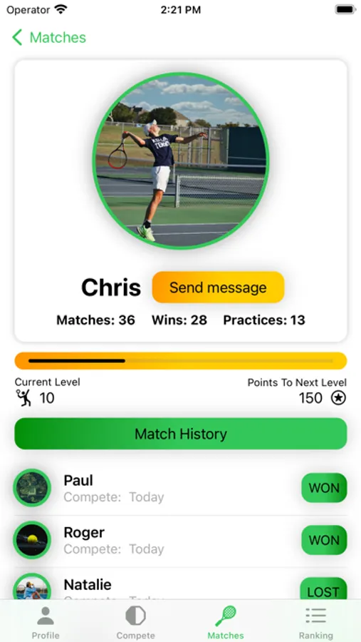 - Messaging system, which allows players to communicate and arrange matches/training with others. This makes it easy for users to find opponents and set up competitions in a timely and efficient manner.