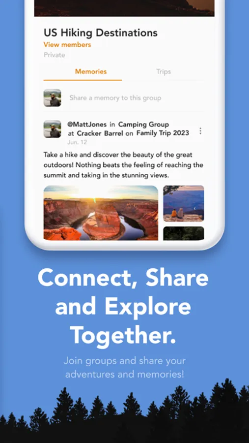 SHARE your experiences and stay connected. Form Groups for family, friends, or a caravan and keep in touch through chat, check-ins, and shared memories. With Itinerary Collaboration, everyone stays on the same page. And with Shared Timelines, your loved ones can follow your adventures as they unfold.