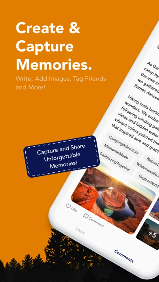 CAPTURE the memories that count. With the Memories feature, document every moment of your adventure with photos, videos, and journal entries. You can even create Camping Stories, sharing your favorite recipes or thrilling escapades.