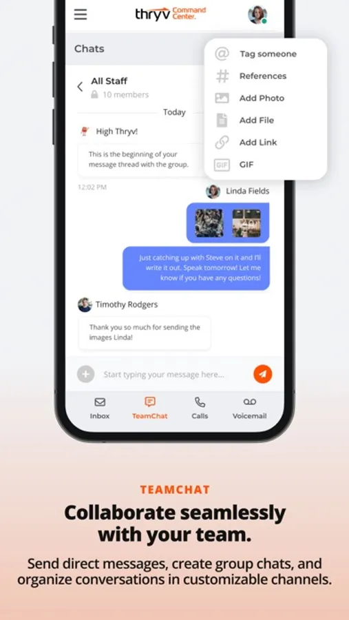 An easier way to communicate starts here. Thryv Command Center lets you connect your messages across email, social media, phone, video, SMS, and WebChat in one centralized inbox for free. You won’t have to jump between platforms or deal with complicated workflows ever again, instead handle your team and customer chats in one spot no matter where you are.
