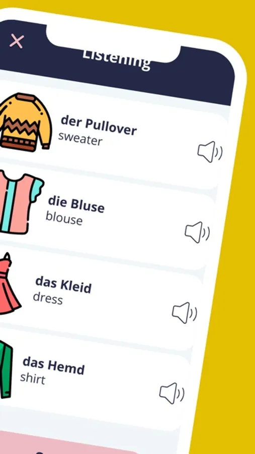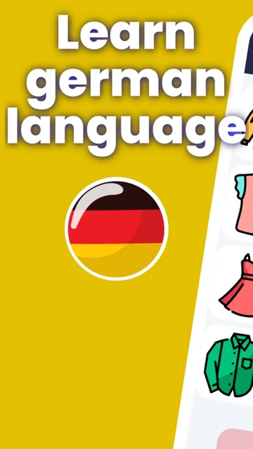 Study German words in the app German for Beginners A1 Level. Studying German has never been so easy and simple!