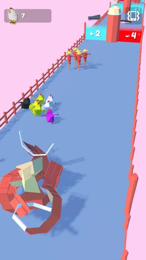 Show the power of the chickens! Save as many chickens as you can and bring them safe to the end of the farm, destroy obstacles in your way and gather eggs to upgrade your chickens!