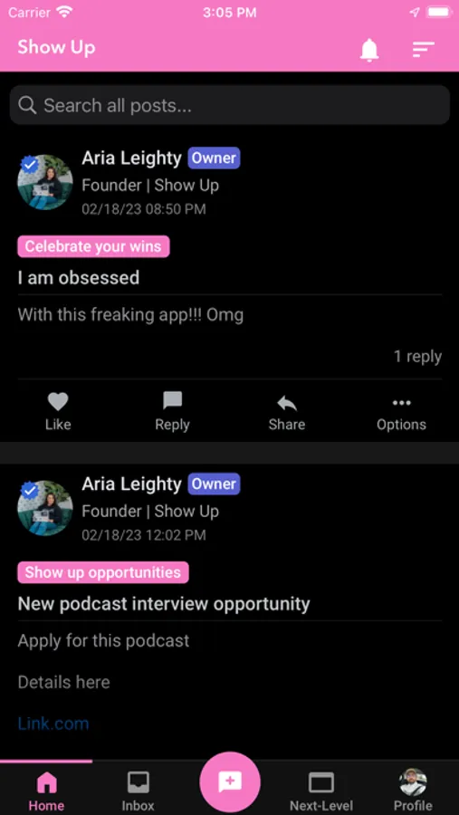 Community App to support the “Show Up” program. Receive expert visibility strategy, coaching, and consulting as you begin showing up in the world. Expand your network with intentional, high-vibe, like-minded creatives. Receive weekly podcast/speaking pitch opportunities and press call outs. Access monthly intentional AF Networking calls.