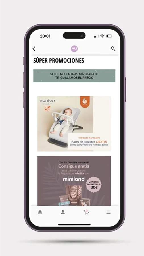 ¿Quieres pertenecer al Club ALI Bebé? Sólo por ser cliente de la Aplicación ALI Bebé disfrutarás de ventajas exclusivas. Acumula con tus compras en la aplicación para disfrutar de descuentos en futuras compras. También encontrarás descuentos exclusivos en la aplicación de ALI Bebé.
