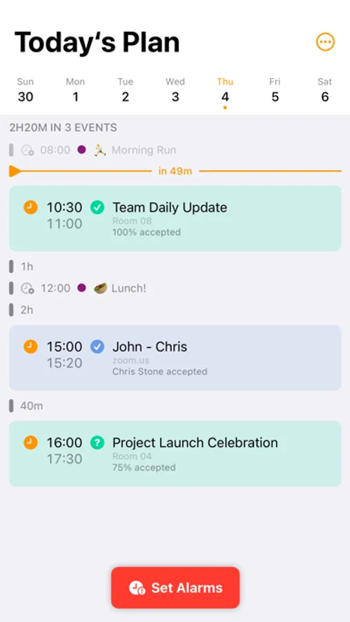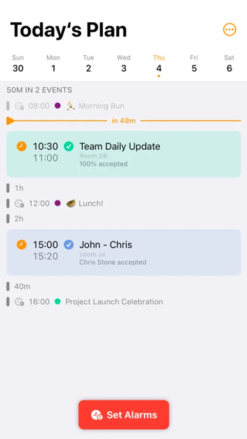 Set alarms for events that matter the most so you always stay on schedule.