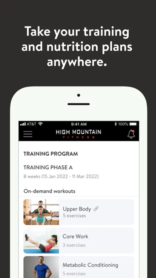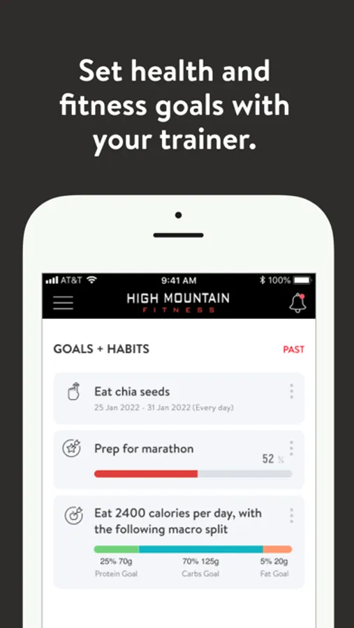 With the High Mountain Fitness App, you can start tracking your workouts and meals, measuring results, and achieving your fitness goals, all with the help of your personal trainer.