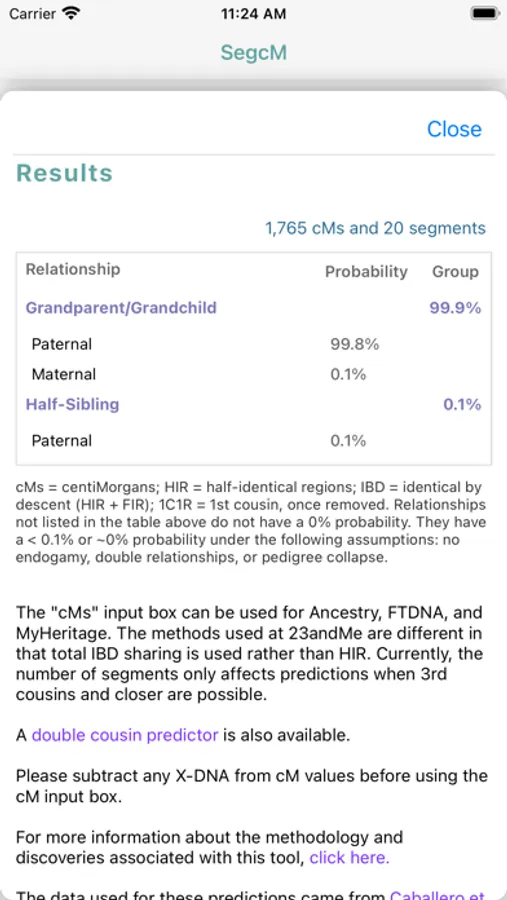 Find out how you're related to your DNA matches using the number of segments and total centiMorgans. This app. contains multiple predictors that work for Ancestry, 23andMe, FTDNA, and MyHeritage. There's even a predictor for double cousins. These tools use the most advanced probability data from peer-reviewed data sources and methodologies that are published in science journals. DNA Science even has tools integrated at GEDmatch.