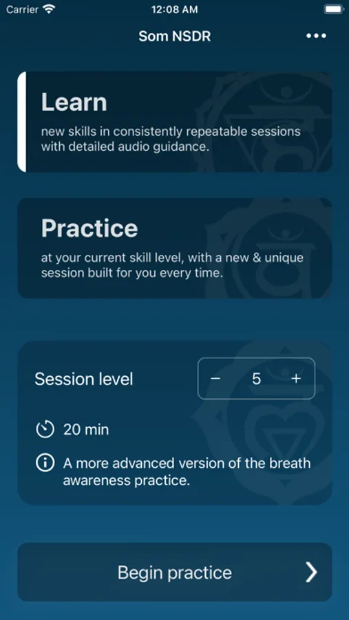 Som provides you with a rigorous & science-backed NSDR program that's simple and easy to follow. Just lie down and listen to the audio guidance, and Som will train your body and mind to relax, let go, and consciously move towards the states of deep relaxation and sleep. It adapts to your level, introducing more advanced techniques over time and generating dynamic, varied practice sessions. It's like a personal trainer for better sleep and less stress.