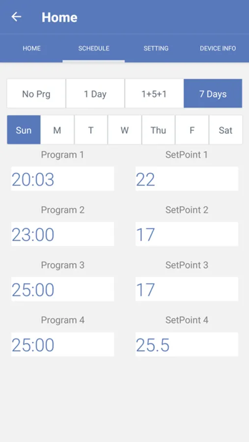 • Set up 6 programs per day for 7 days a week to run on schedule mode