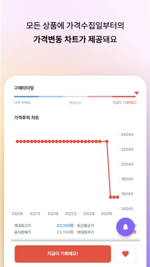 - 가격 차트를 보고 구매하려는 상품 가격이 괜찮은지 알려드려요.