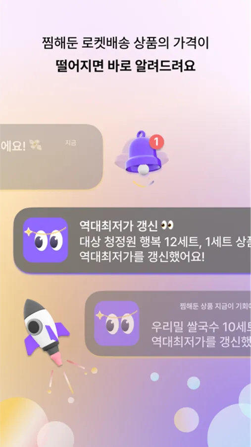- 변경되는 로켓배송 상품의 가격이 떨어지면 바로 알려드려요.