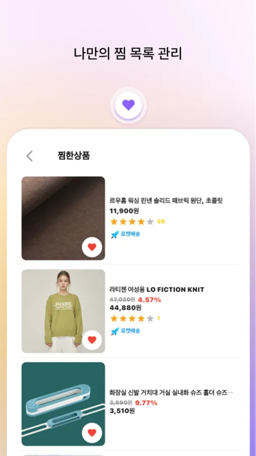 - 내가 찜한 상품을 쉽게 확인할 수 있어요.