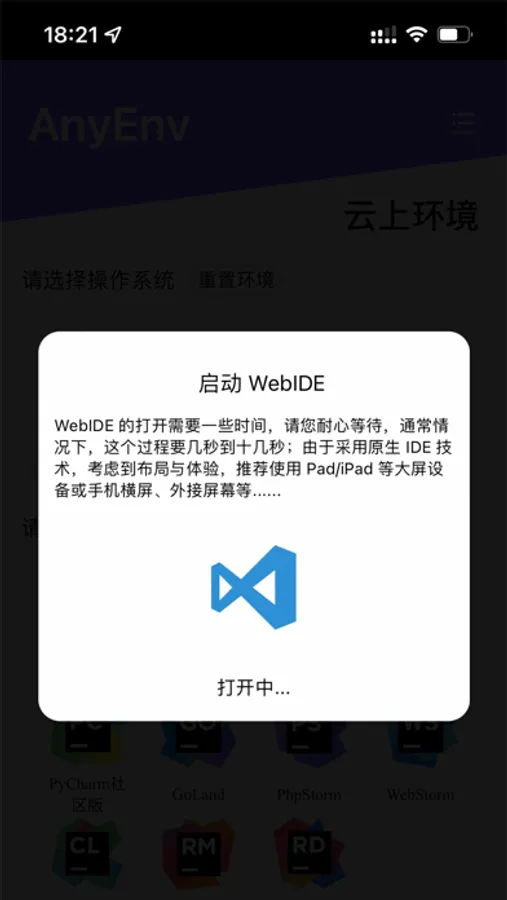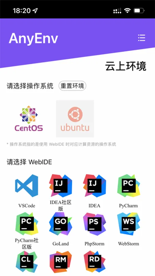 AnyEnv 项目,可以通过开发者的个人需求,自由选择底层操作系统(目前提供 CentOS 和 Ubuntu)与云上的开发工具(例如 VSCode,JetBrains等)进行云上的代码开发,并且可以随时关闭页面,下次打开页面可快速恢复上次状态,让自由与便利共存。AnyEnv 是基于新一代云计算 Serverless 架构的云上开发环境,基于 Anycodes 在线编程团队自研的云上盘古架构,可以帮助开发者快速创建和恢复云上开发空间,通过 WebIDE,可以随时随地在线进行编程练习与项目开发。