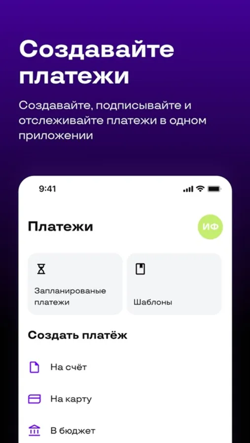 Планируйте платежи: создайте платёж, укажите дату исполнения и подпишите его. Мы отправим платёж в банк в назначенный вами период.