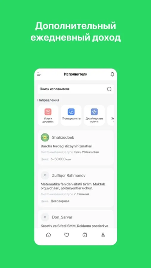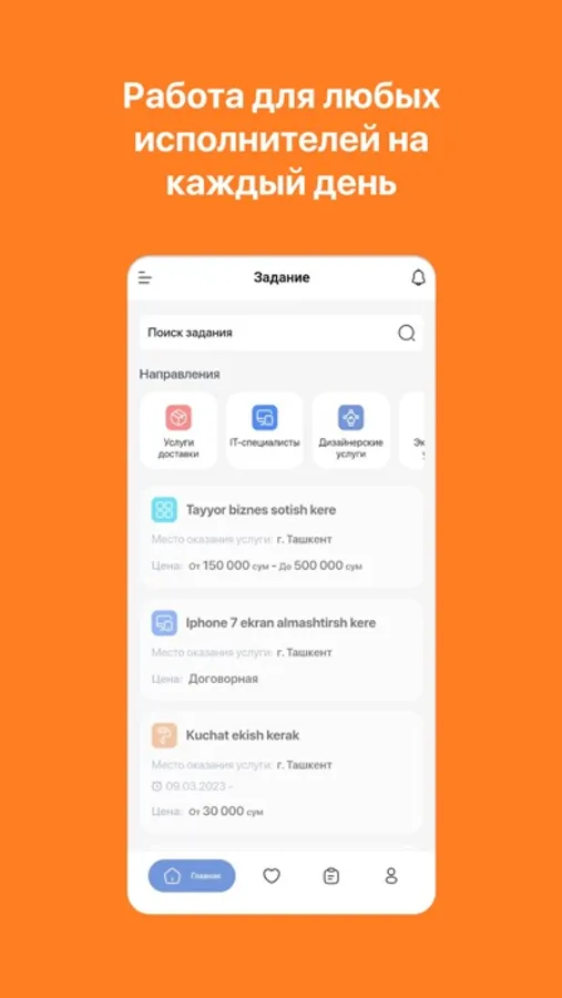 Здесь вы быстро найдете как исполнителей, так и заказчиков для любой работы и поручений, будь вы частное лицо, фрилансер или самозанятый.