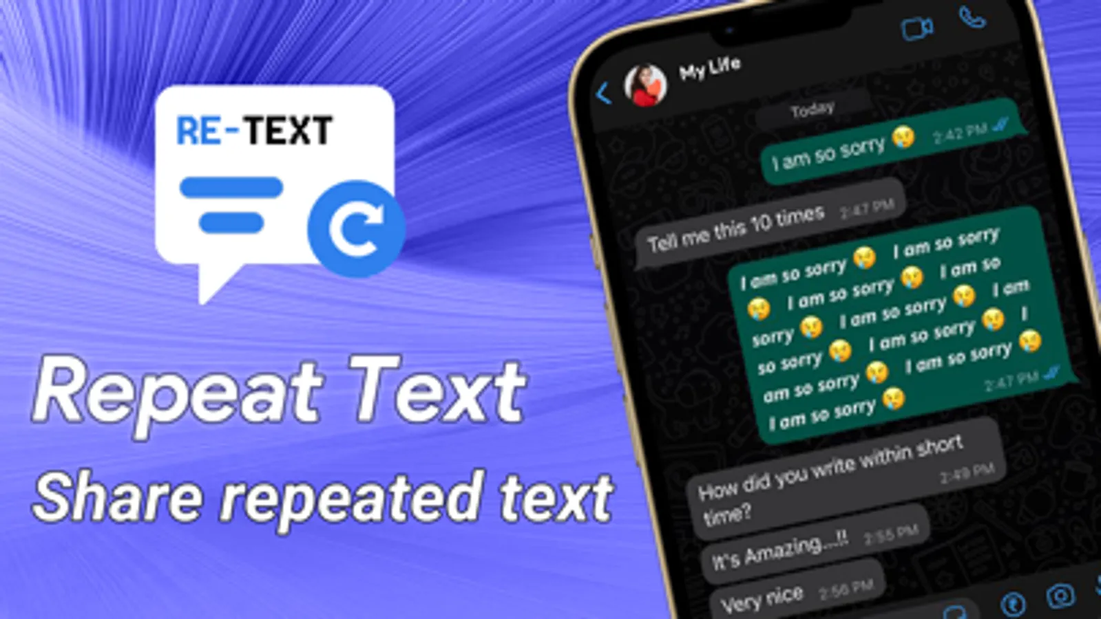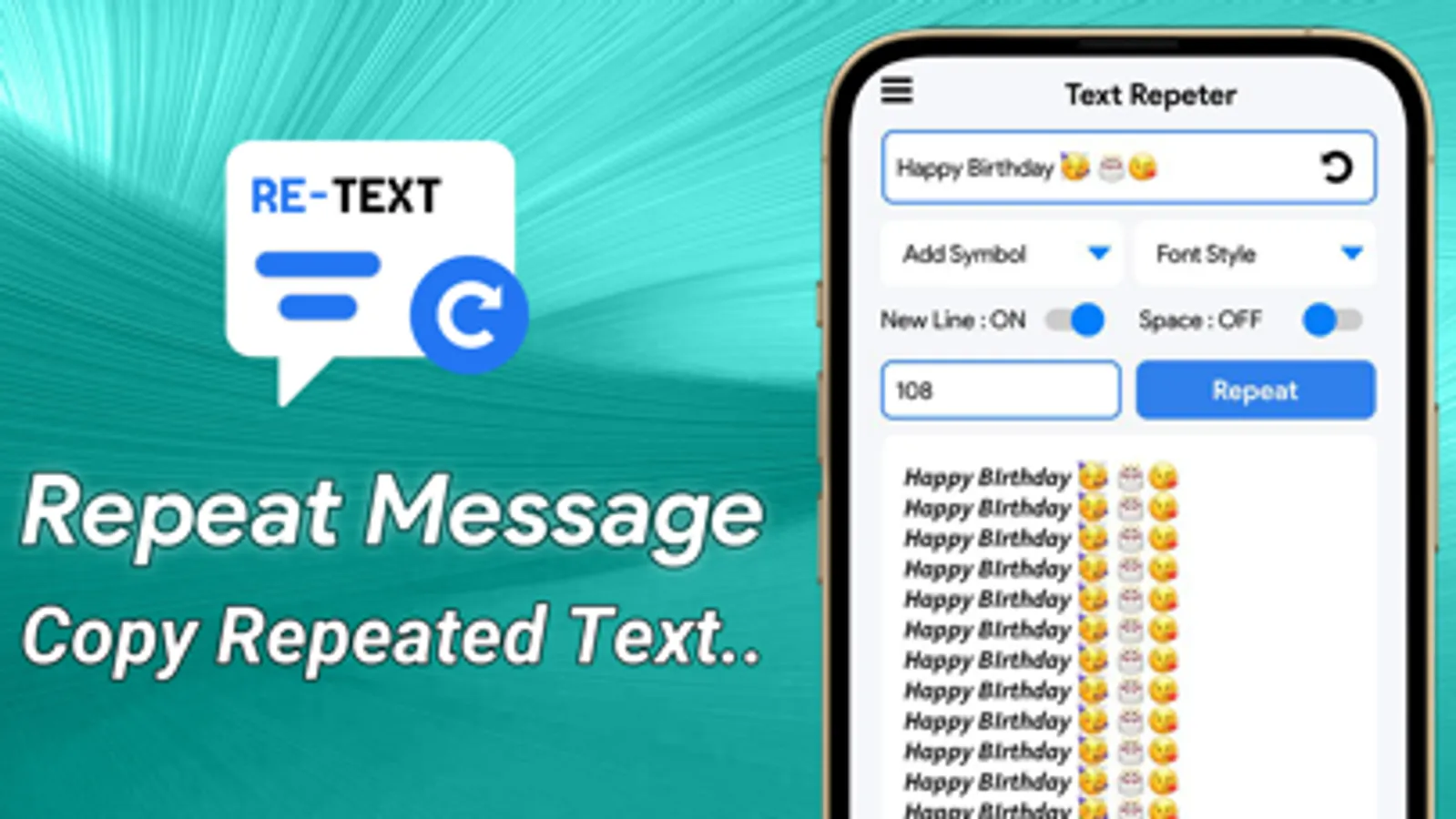 This app repeater to send message repeatedly, and also you can set your repetition limit with new line text repetition.also make repeated letters using alphabet and emoji characters.