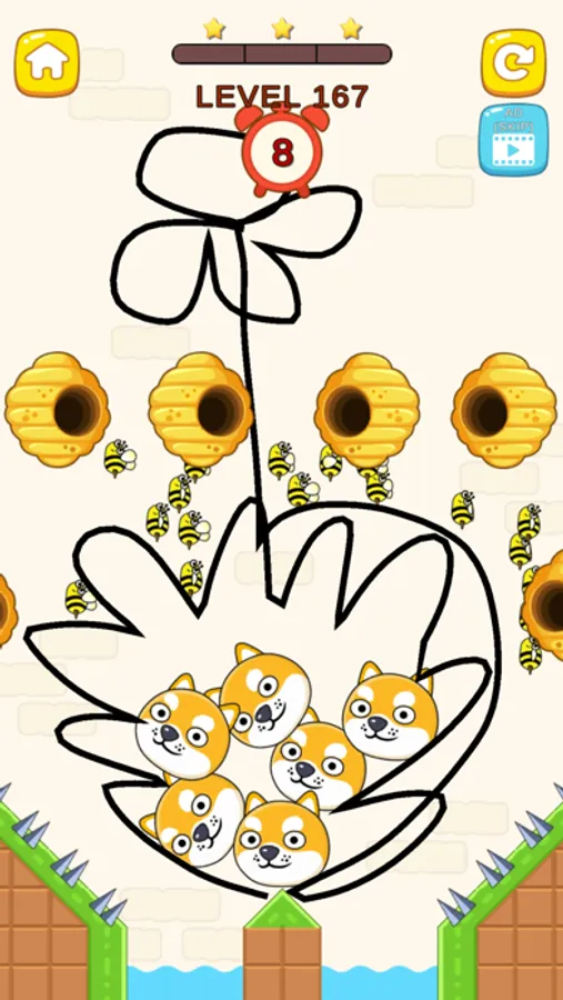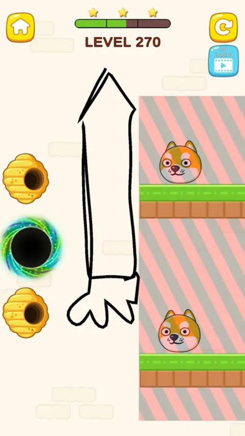 Simply tap the screen to draw one line to strategically protect the doggies. Make sure the line you draw is able to protect doggies from defense for at least 10 seconds.