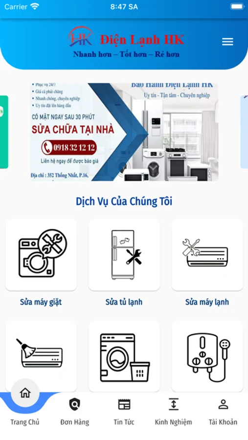 Điện Lạnh HK là một ứng dụng đặt lịch sửa chữa và vệ sinh điện lạnh nhanh chóng trên thiết bị di động. Ứng dụng cho phép bạn gọi thợ đến sửa chữa nhanh chóng và tiện lợi.