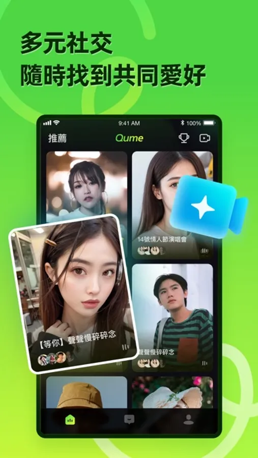 Qume -- 多人視訊直播聊天室、語音派對交友房,男神女神、網紅、KOL都愛玩的多人直播平台!