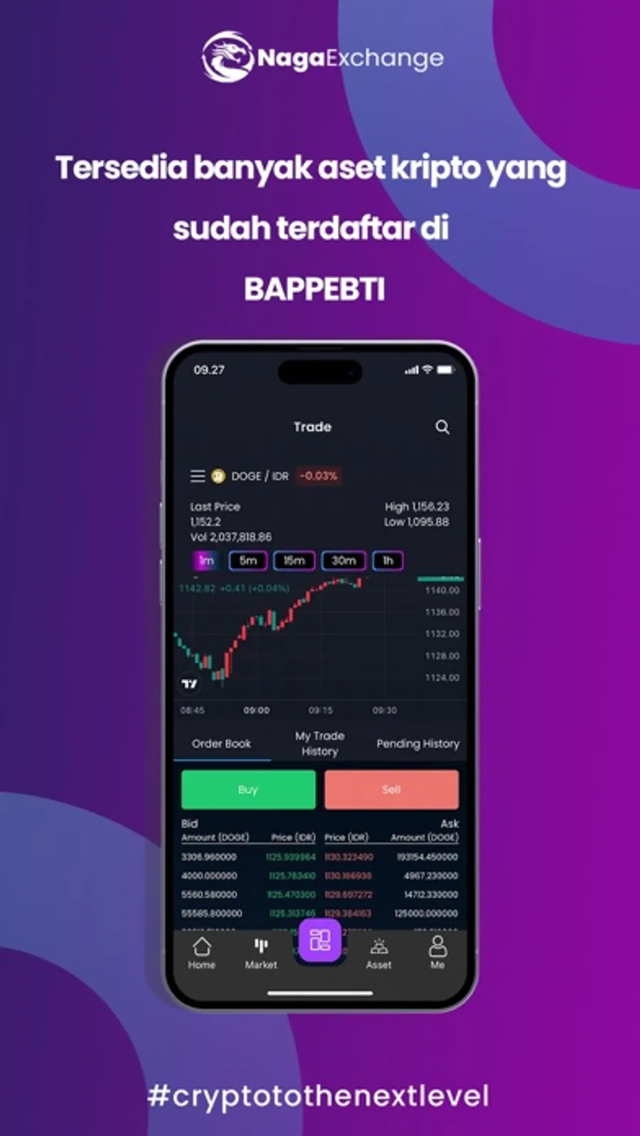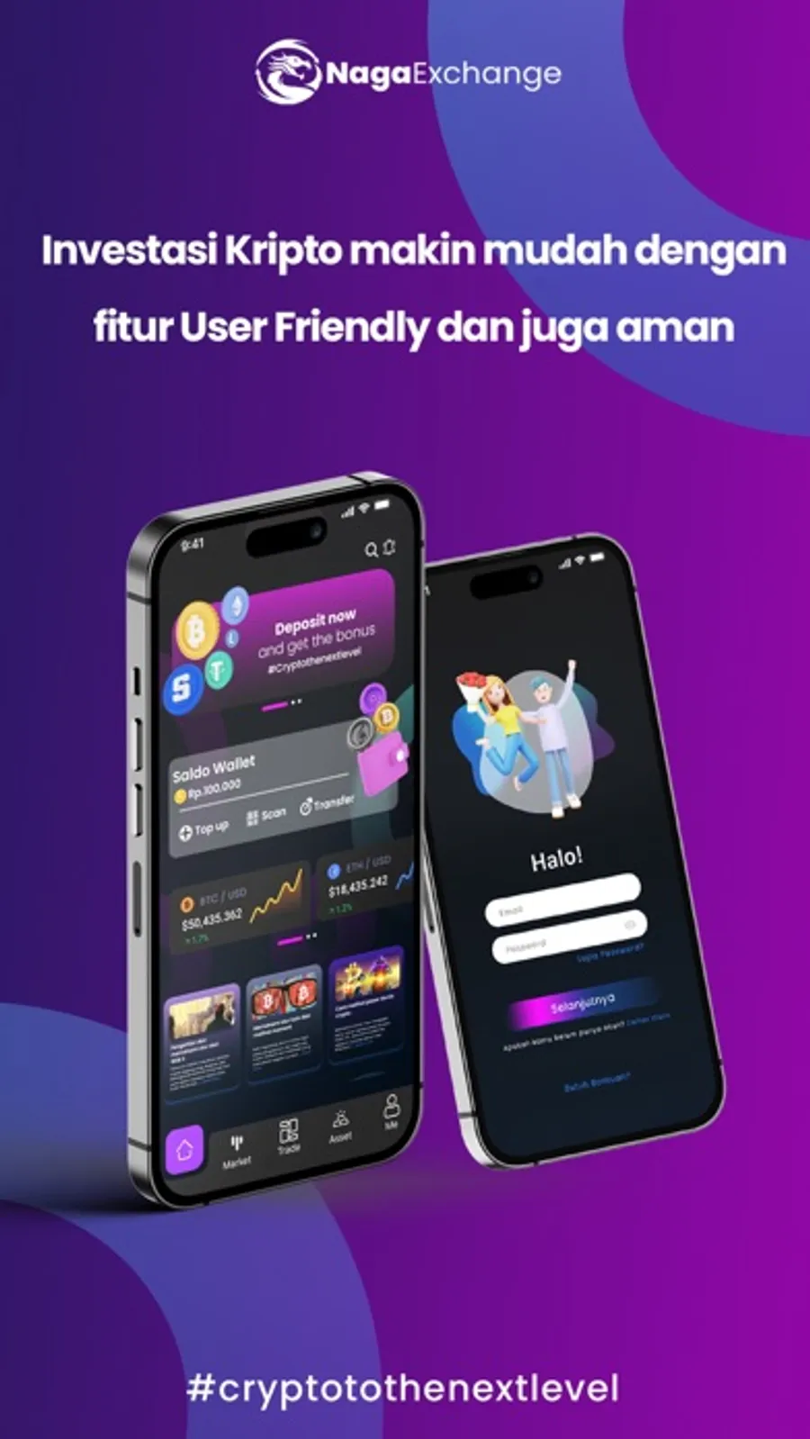 NagaExchange is a crypto trading platform that's made to give you a super easy experience in investing crypto. NagaExchange itself has been regulated by BAPPEBTI. We make tradings, coin transactions, and crypto asset more secure and convenient. We’re commited to help you in trading experience using our Naga Exchange apps that makes your experience more enjoyable and efficient. With high vision “To be the leading crypto company”, Naga Exchange has already achieve an international certification such as ISO 27001 : 2013.