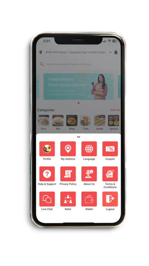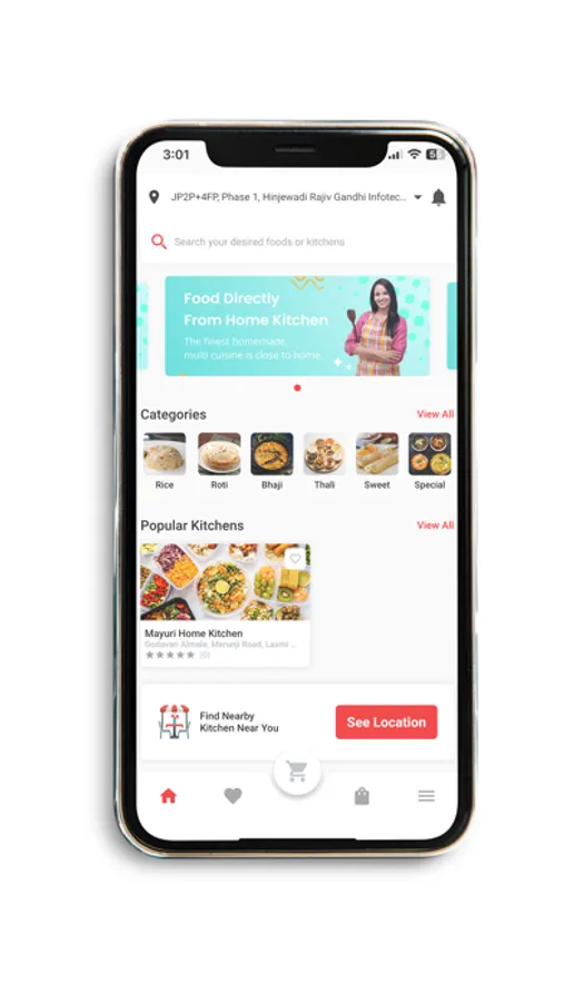 comfort of their home and pay through COD (cash on delivery) after creating an account. They can track their order through the app.