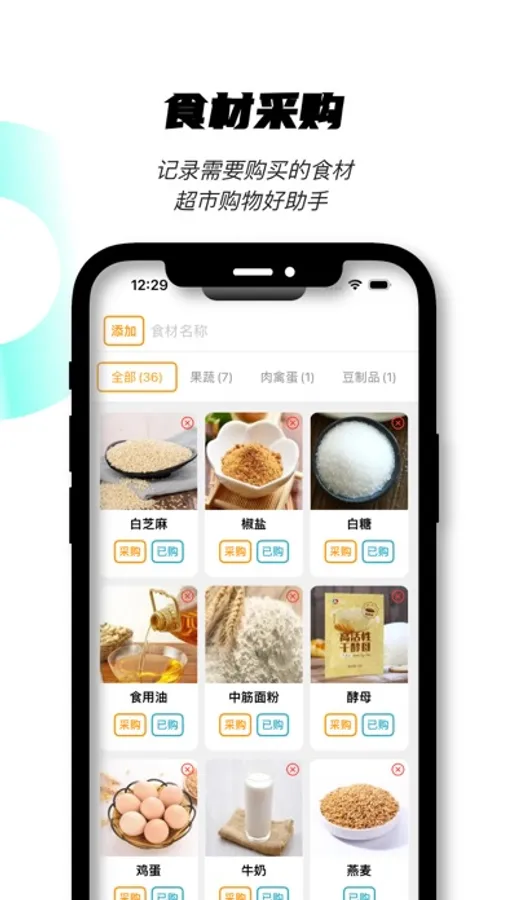 6. The purchase function is convenient for you to record the materials to be purchased. You can purchase the materials according to the purchase list, and never forget the required materials!