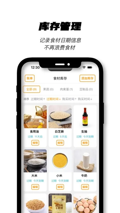 7. Inventory management, help you record the shelf life of the ingredients, and ask you to eat the current ingredients as soon as possible, no waste!