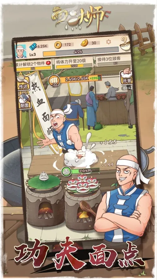 《面点大师》是一款以功夫面点为主题的模拟经营游戏,游戏中包含蒸、煮、煎、炸四大类型的面点,欢迎大家体验。