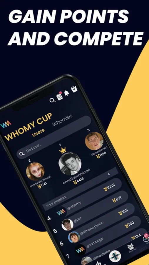 ● Whomy points: useful for positioning the user in the ranking. Obtainable through completing activities and receiving Communications.