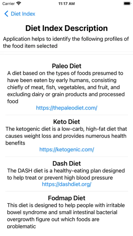 "Famous Diet Profiles under one application". The application collates various common food items, their significance in various diet plans, and their nutrition information. The application brings popular diet plans - paleo, keto, dash, fodmap, gaps, aip, and blood group diet. The application brings awareness about food items before making a choice.