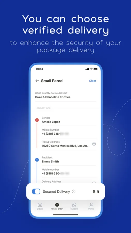 For particularly valuable orders, utilize the "Secured Delivery" function. With this option, our driver will personally hand over the package to the recipient, and delivery confirmation will be obtained through a one-time code sent to the recipient via text message.