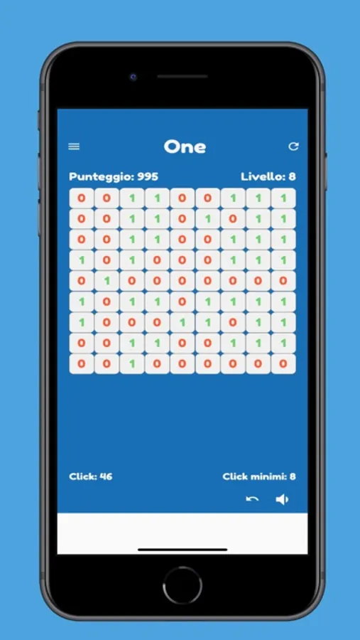 The goal is to set all cells on the board to 1 with a sequence of clicks. When you click on a 0, the cell is set to 1; when you click on a 1 the cell is set to 0. In addition, each click changes the current state of the entire row and column that contain the cell you've clicked.