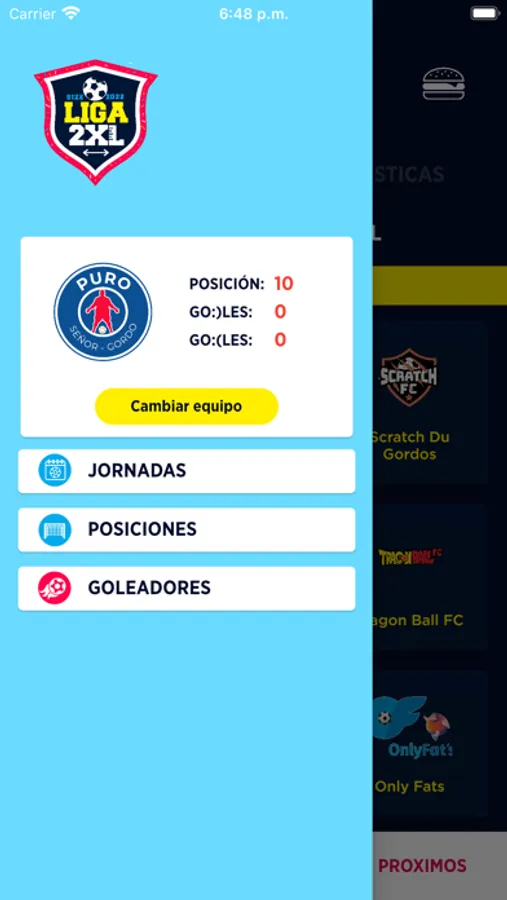 - Seleccionar tu equipo favorito y sus estadísticas.