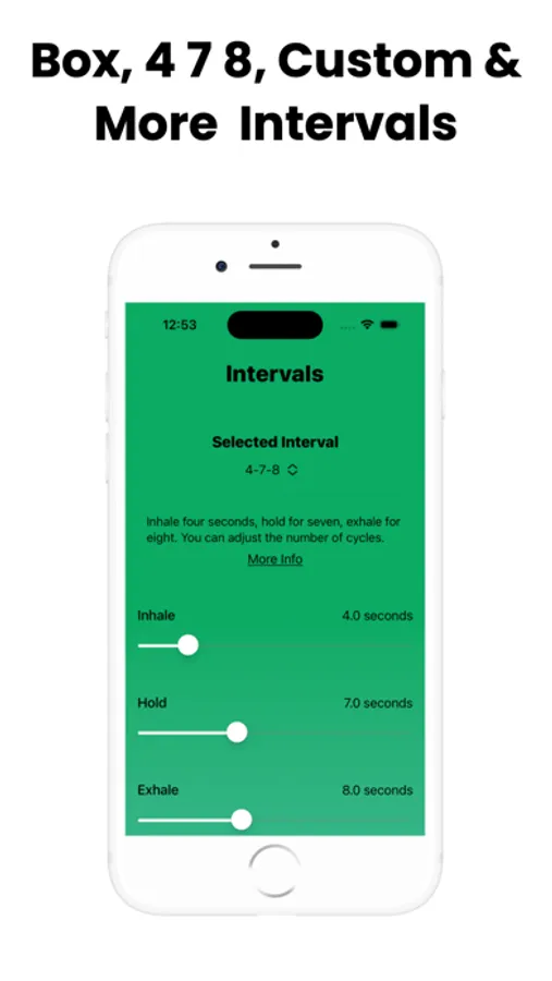 The app contains very easy to follow exercises with timed inhales, exhales and holds. You can also set the interval cycles and there are three custom intervals which you can set all of the settings for a custom breathing exercise.