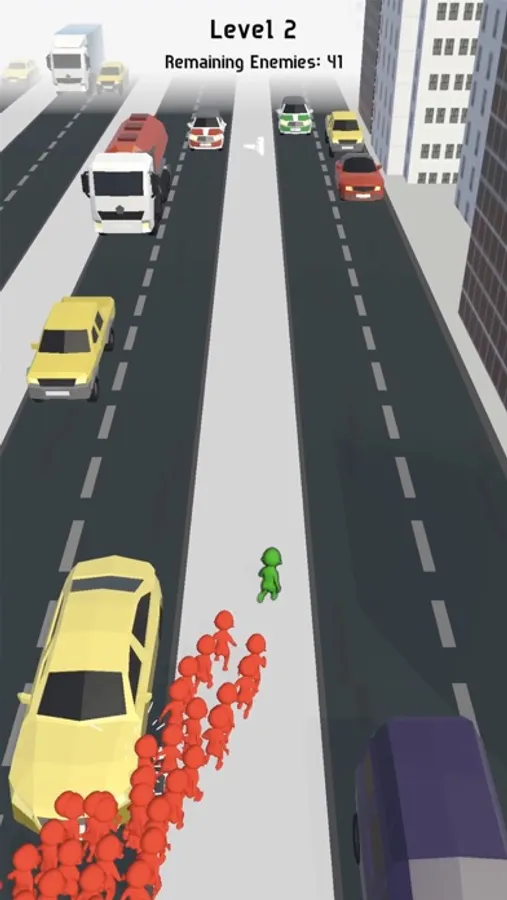 Welcome to Crash Them All, an exhilarating and fast-paced endless running game! In this game, you play as a daring individual running from a relentless crowd of pursuers. You must use your reflexes and agility to dodge cars as you dash down the road and evade your pursuers. With every successful maneuver, you will gain points and advance further in the game.