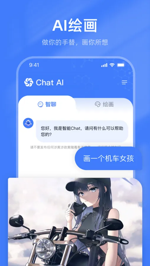 AI绘画:除了AI智聊系统,我们的软件也为用户提供了AI绘画服务,只需要输入一段文字,即可生成自己想要的图片。