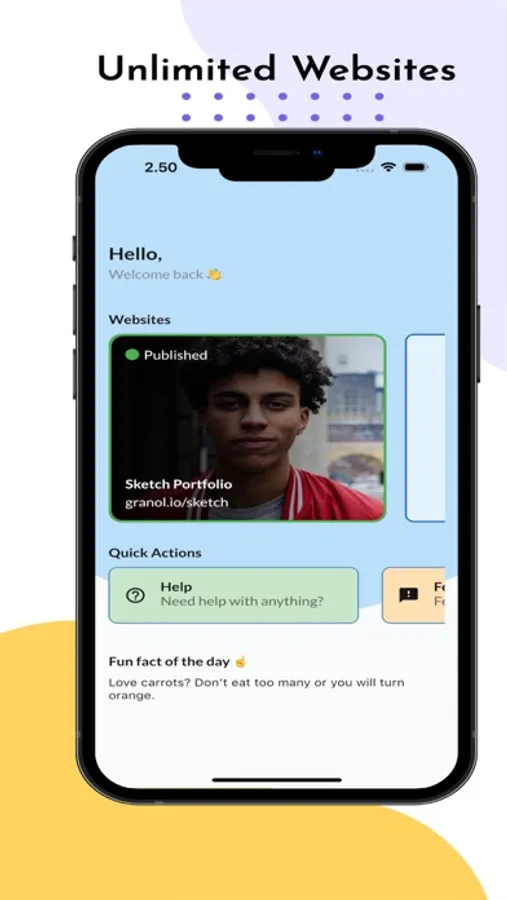 You don’t need anything else than the Granolio app and a phone to create and manage your very own website.