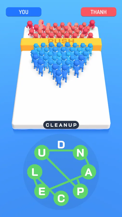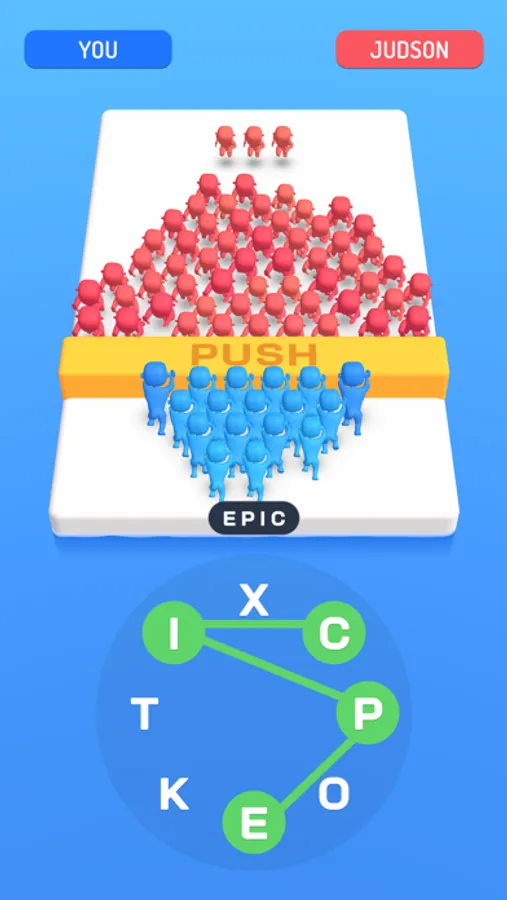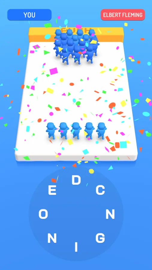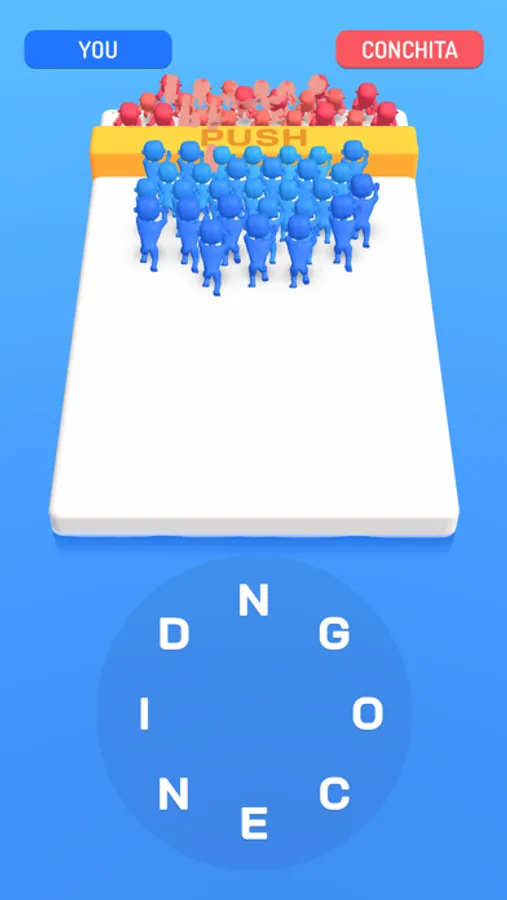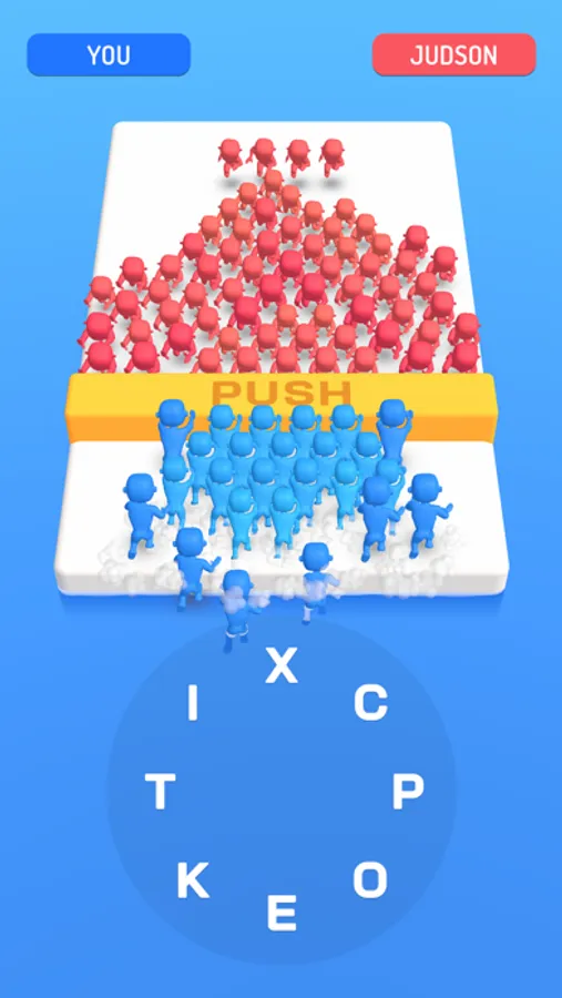 You are given a board with letters, and you must create words by swiping your finger across the letters. Each word will form an army. The longer the word, the stronger your army. Your objective is to push all enemies off the platform and into the water to win.