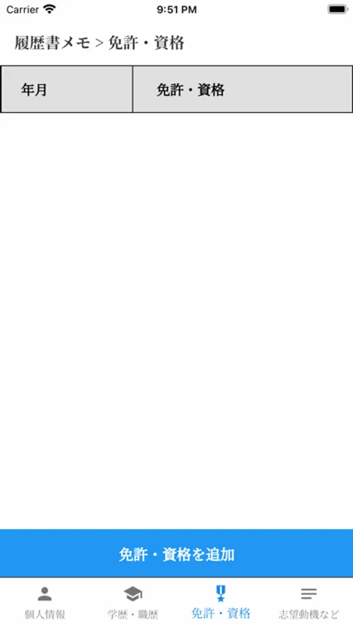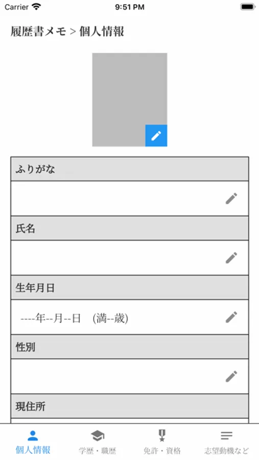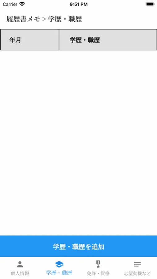 「履歴書メモ」は履歴書の形式に準拠した専用メモ帳アプリです。