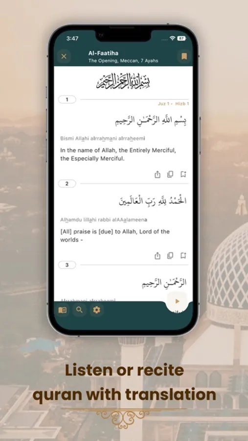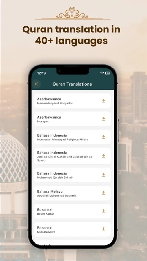 - Quran translations for over 40 languages.