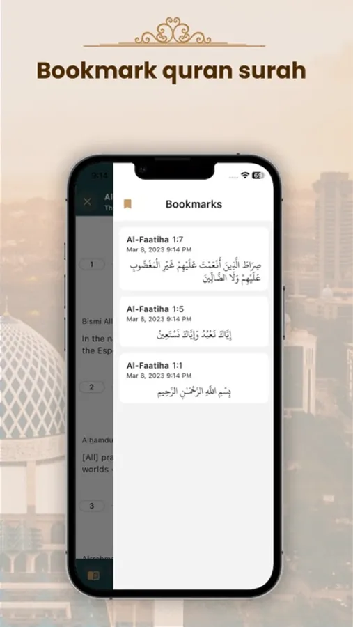 - Bookmark and add notes to any Aya in the Quran.