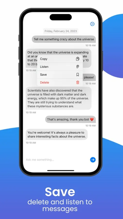 With Yodd AI Chat, you can also generate images to accompany your messages, adding a new level of creativity and personalization to your conversations. Plus, you can save, listen to, and delete messages, making it easy to keep track of important conversations and messages.