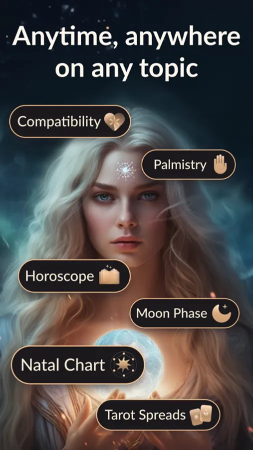 * With customizable user profiles, users can easily and conveniently interact with the AI Mystics through various chat features. Enjoy accurate insight into your life, destiny, and relationships.