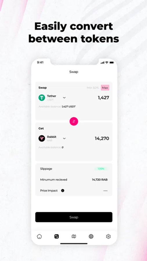 - Your Rabbit Wallet is encrypted locally on your device and biometrically secured