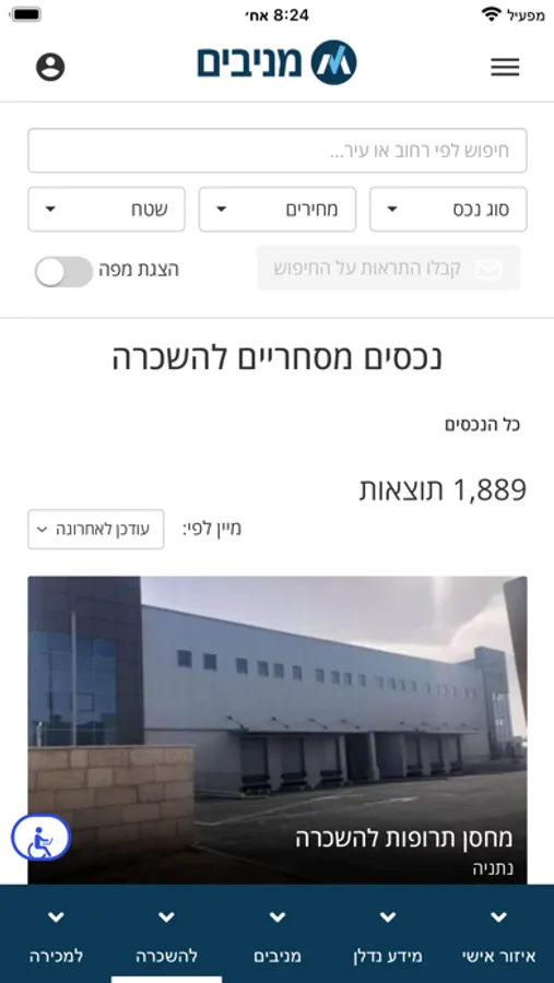 מניבים. הינו לוח נדל"ן מסחרי שמציג לכם משרדים למכירה ולהשכרה, נכסים מניבים, מגרשים, חנויות, מרלוגים, מחסנים, עסקים למכירה ועוד.