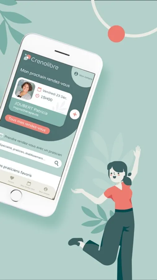 Grâce à votre application Crenolibre vous pourrez ajouter en favoris vos praticiens et retrouver vos rendez-vous passés et à venir.